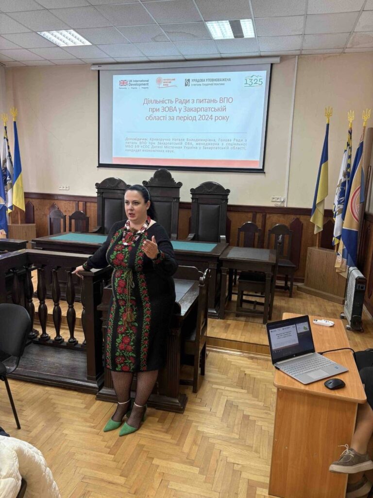 Зі змістовною презентацією виступила Наталія Криворучко, голова Ради з питань ВПО при Закарпатській ОВА, яка окреслила реальні виклики та потреби у цій сфері.